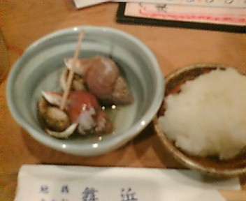 でだ、漬物がいい感じの糠漬け。黄色いのが人参と思いきや違う。コリンキという外来の品。漬物担当のママさんに美味しかった旨伝えたら、追加でサービスしてくれた。嬉しいね〜