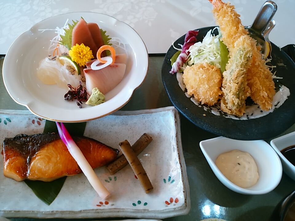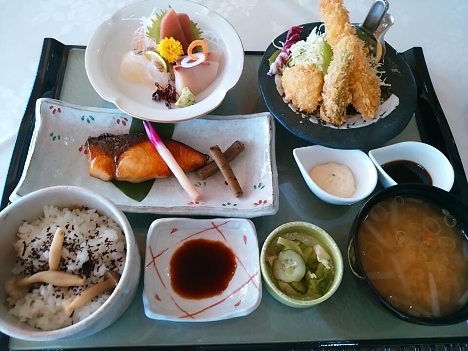 良質な刺身、ブリ照り焼き、海老と野菜のフライなど 全てに渡り盛り付けが丁寧。宛(さなが)ら ちゃんとした料理屋風。平地でもこのお値段でこの内容なら通用するレベル。いや、それ以上。