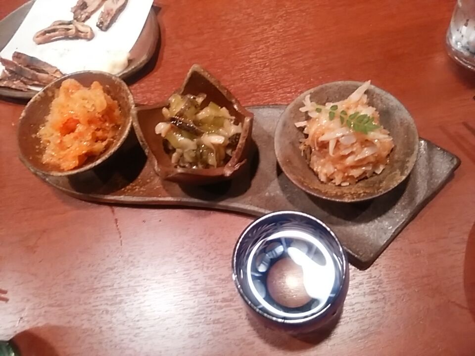 漬物盛り合わせ。いぶりがっこや ちゃんとした沢庵、松前漬けなど とても良い。