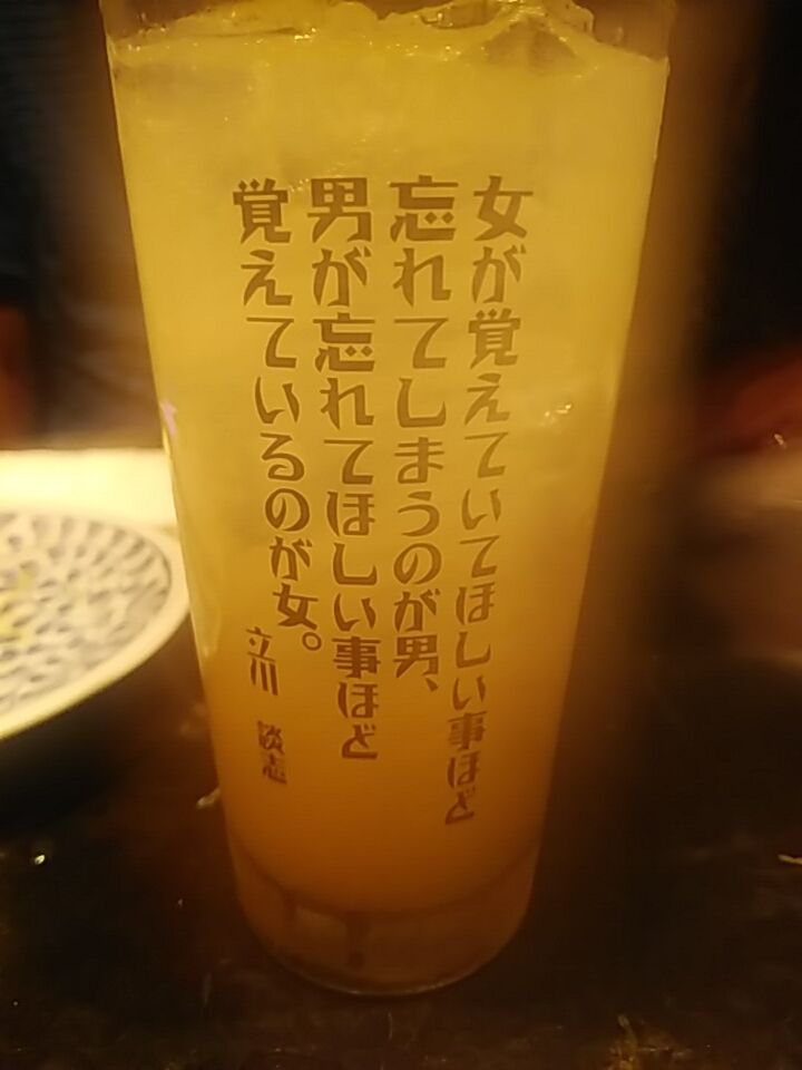 サワーのグラスに記載の文言。