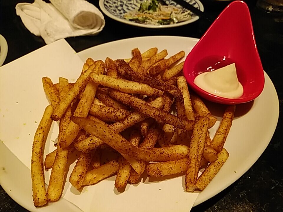 ポテトフライ、エスニカンなスパイスが施され美味い。お替りしちゃいました。