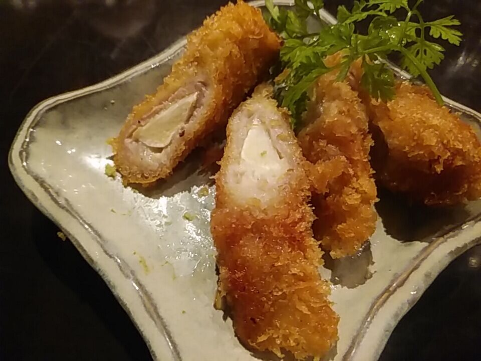 揚げ物はマコモダケの肉巻き。シャキとしてて美味いね。