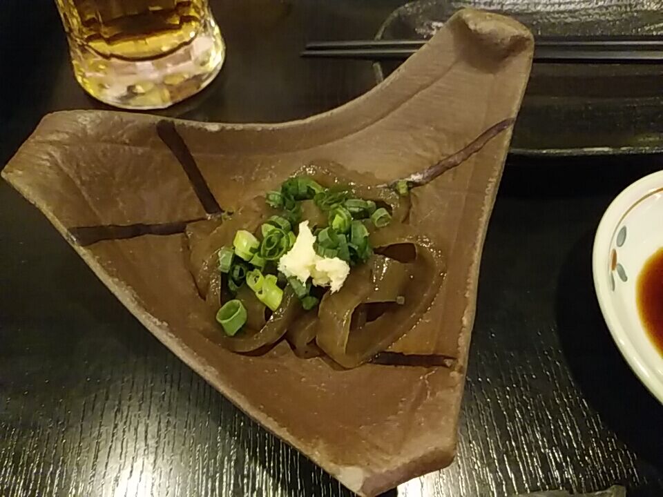 お通し、あれ?これなんだ?「いごねり」つーもので、海藻の煮こごりとのこと。佐渡ヶ島ソウルフードらしい。